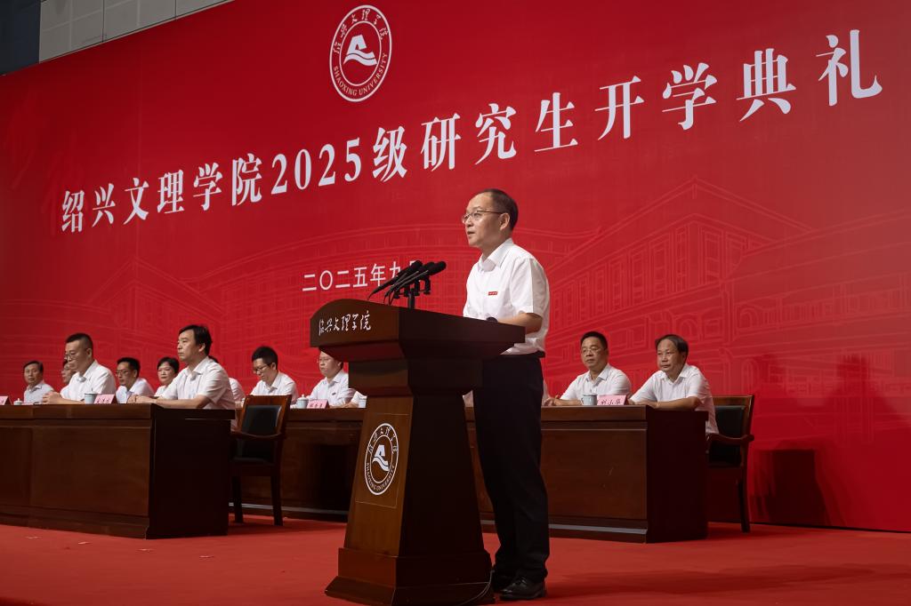 赵阳对新入学的923位研究生表示衷心的祝贺和热烈的欢迎,介绍了绍兴深厚的历史文化底蕴和学校110多年的办校历程。赵阳亲切寄语各位研究生,要大胆探索、勇于突破,不畏难、不盲从,研究真问题,做真学问,在求知路上收获成长。他指出,要守报国之心而“行”,勇担时代重任,做服务人民的科研;要应时代之势而“为”,关注前沿问题,产出有价值的研究;要攀学术之峰而“上”,敢于攻坚克难,锤炼坚韧不拔之志,在民族复兴的伟大征程中不负时代、不负韶华,用智慧与汗水,不断书写无愧于青春的壮丽篇章。