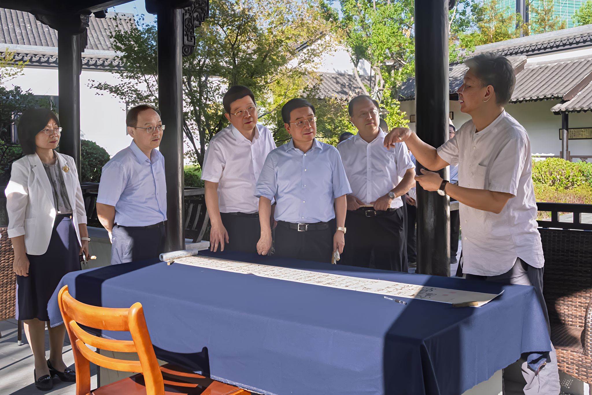 座谈会前,施惠芳一行实地走访调研了学校算力应用技术创新中心、校园改扩建工程现场、教育部中华优秀传统文化传承基地(书法)和越文化研究院,与现场教师亲切交流,详细了解博士点建设、文化传承创新、服务地方等工作,并就推进教育科技人才一体化发展、“两新”融合等提出期待和要求。