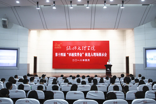 4月18日晚,第十四届“卓越奖学金”候选人现场展示会在铁城科教馆隆重举行。校党委副书记唐和祥,市有关部门嘉宾代表,校职能部门负责人代表,校内教授代表等受邀出席。各学院相关领导、师生代表、校内外新闻媒体记者等400余人观看并参与评选,为10位候选人现场PK加油喝彩。