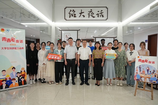 6月20日晚,“绍大夜话”第十期之“青春夜话”第八期在行政楼三楼中庭举行。副校长胡云进与14名本硕、中外学生代表面对面亲切交谈,共同探讨学生科研素养与能力培养等话题。人文社科处、科学技术处、学工部、校团委等相关负责人参加活动。