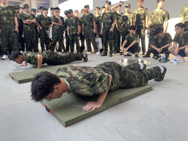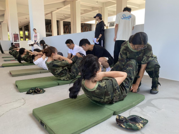 俯卧撑区域,学员们动作规范到位,每一次的起伏都展现出坚定的决心。