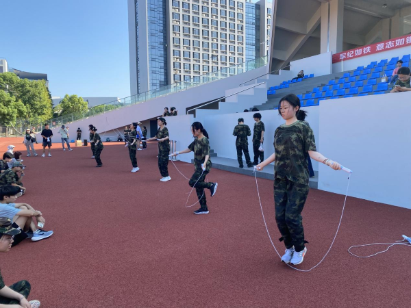跳绳场地中,绳子快速飞舞,奏响了青春活力的乐章。