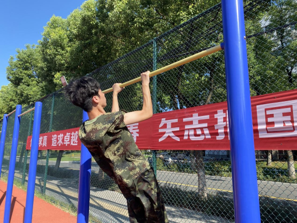 在引体向上的赛场上,学员们鼓足干劲,凭借着顽强的毅力挑战着自己的极限。
