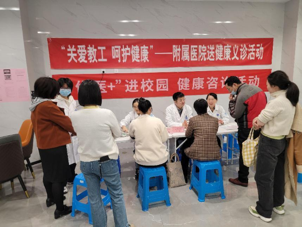 11月18日下午,附属医院医学专家一行10人走进校园,开展“关爱教工、呵护健康”义诊活动。本次活动由校工会、机关党委、附属医院联合开展。