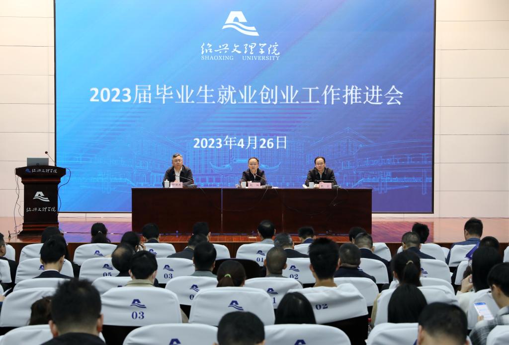 赵阳全面回顾总结了学校2022届毕业生就业创业工作情况,并客观分析了当前就业创业工作面临的新形势、新情况。他表示,学校党政高度重视毕业生就业创业工作,就业工作统筹力不断增强;多措并举拓宽渠道,就业岗位“供给力”不断增强;创新方式强化意识,就业指导“服务力”不断增强。赵阳强调,2023年高校毕业生就业形势依然十分严峻,全校上下要千方百计推进2023届毕业生就业创业工作,要强化责任落实体系,推动就业“一把手”工程再落实;要完善岗位拓展机制,实现岗位供给数量和质量再提高;要增强就业创业服务效能,推进就业服务质量再提升;要加强就业工作队伍建设,促进就业育人体系再完善。